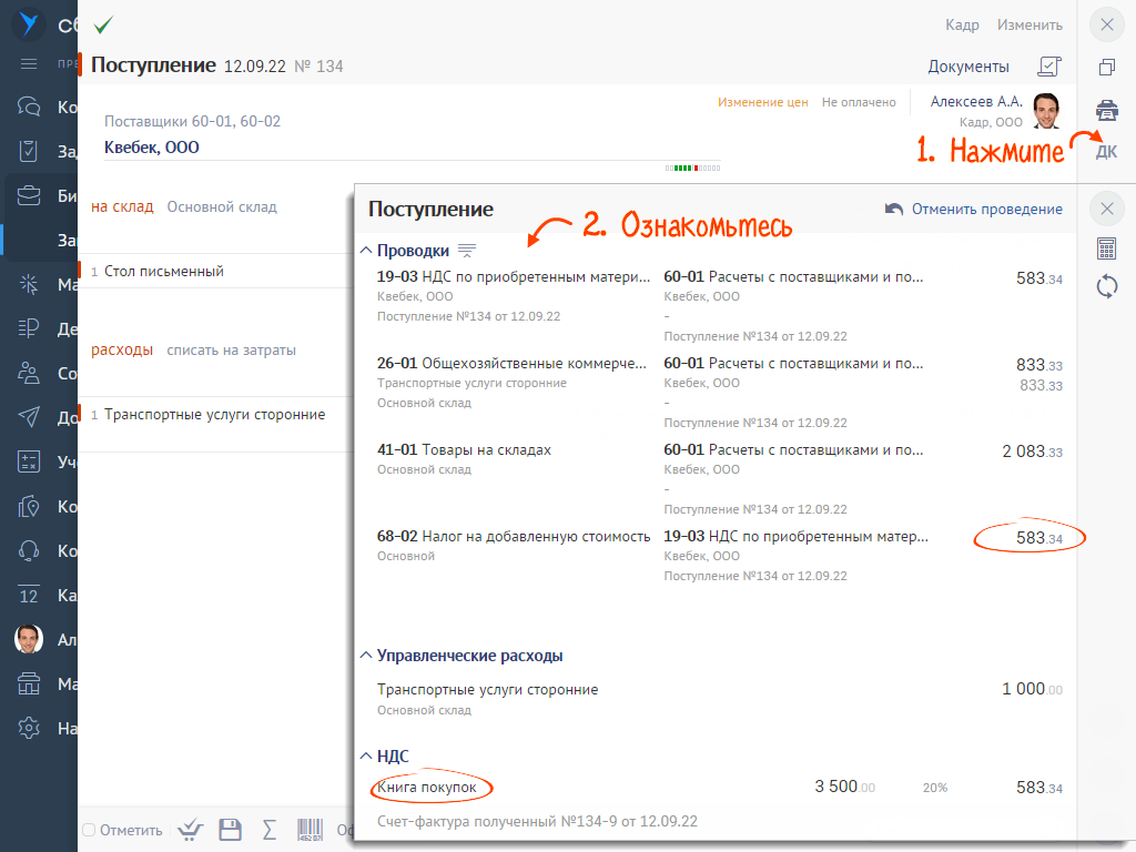 - Товары (работы, услуги) должны быть приняты к учету․