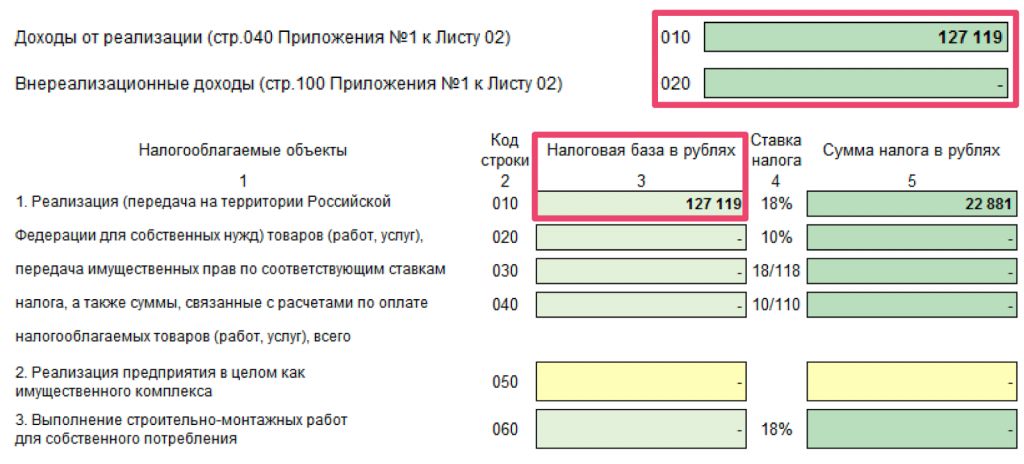 - Определяем сумму входящего НДС по всем приобретенным товарам, работам и услугам.